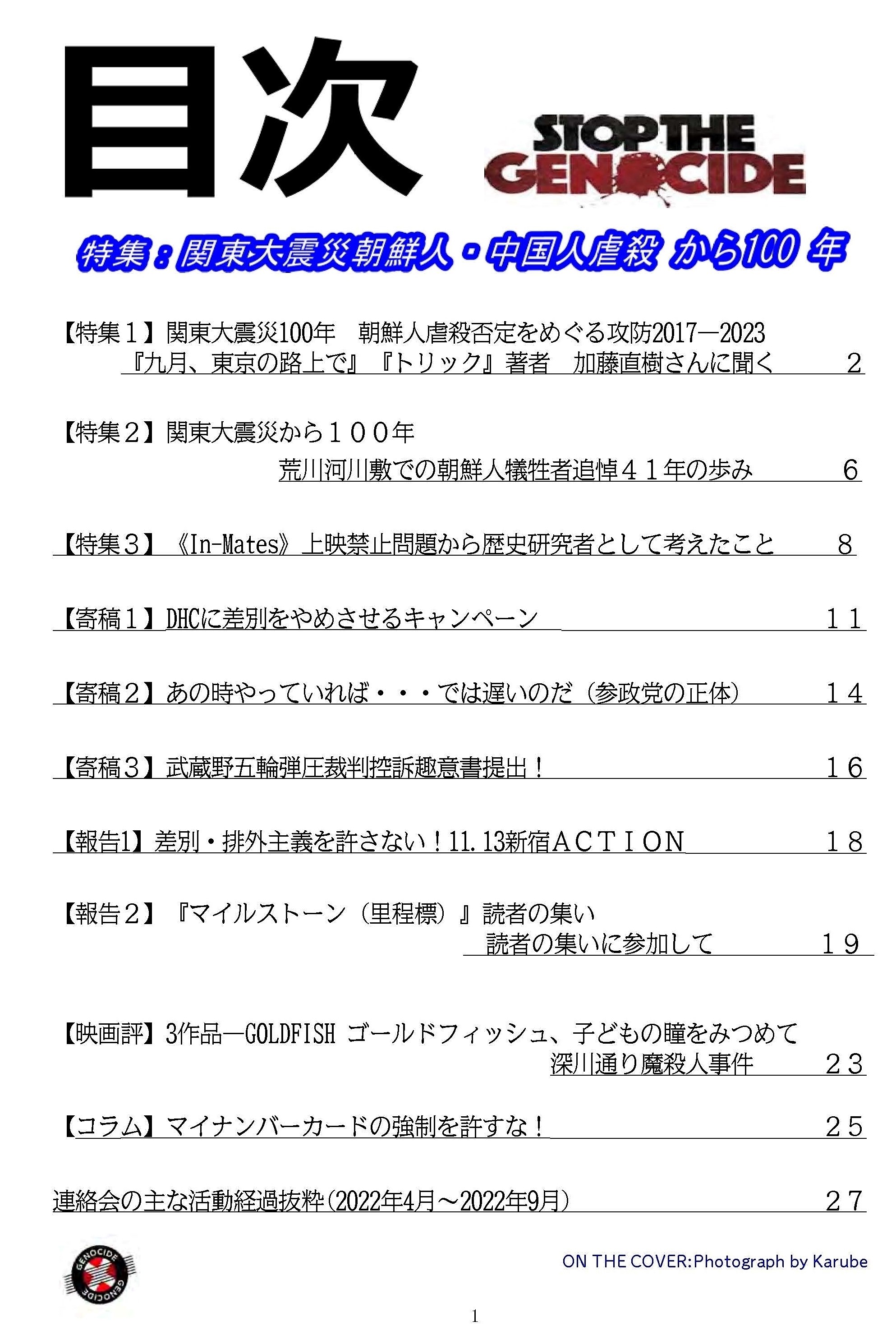 差別・排外主義に反対する連絡会では年2回ほどですが、パンフレットを発行しています。ご購読いただければ幸いです。なお、2023年4月30日発行の17号はB5判で28ページ・フルカラー印刷です。