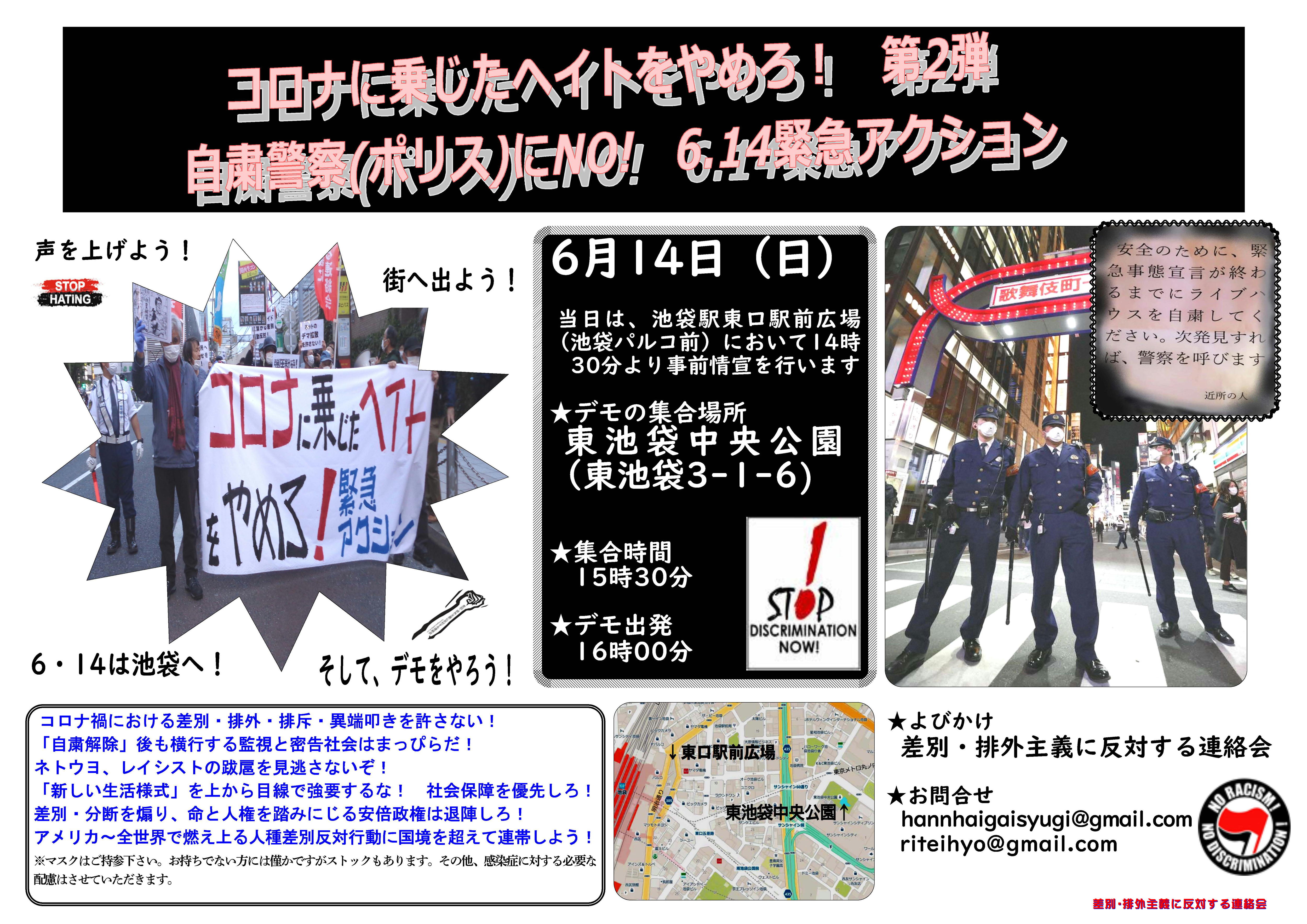 コロナに乗じたヘイトをやめろ!第2弾-自粛警察(ポリス)にNO! 6.14緊急アクション(案内)